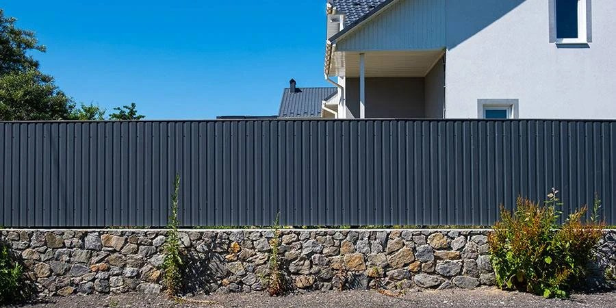 Ограждение, имитирующее деревянный забор, которое сочетает в себе относительно невысокую стоимость и эстетичный внешний вид.